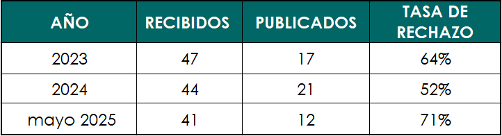 Estadísticas - Tasa de rechazo de artículos postulados